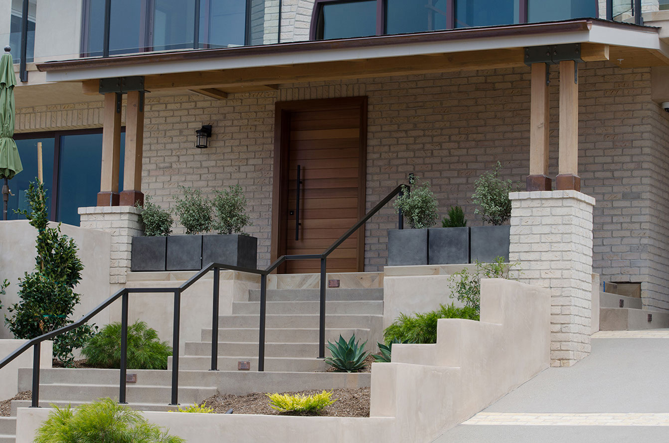 Custom Contemporary Entry Door - Driveway Gate and Pedestrian Gate.